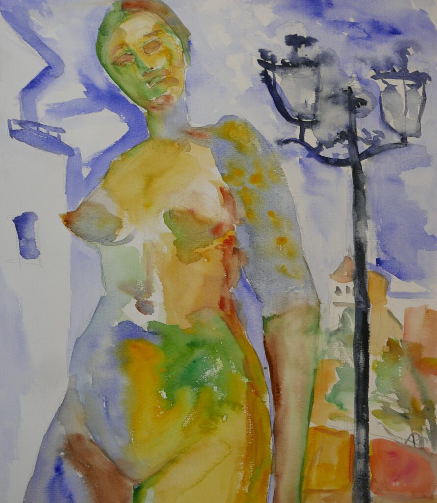 195. Dona mediterrania / Sitges (2026), 50×58, Aquarell auf Papier